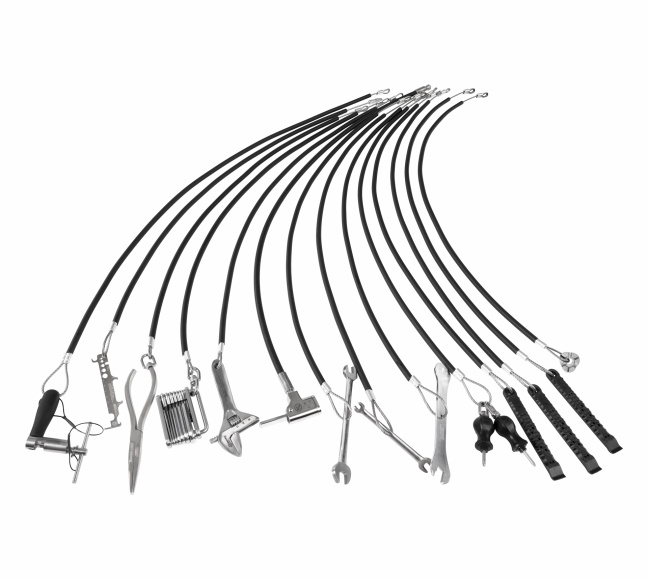 • 工具安装在橡胶包覆的不锈钢丝上,钢丝直径 Ø4 毫米,材质为 AISI 316,不含橡胶包覆外径 Ø11 毫米Galeria